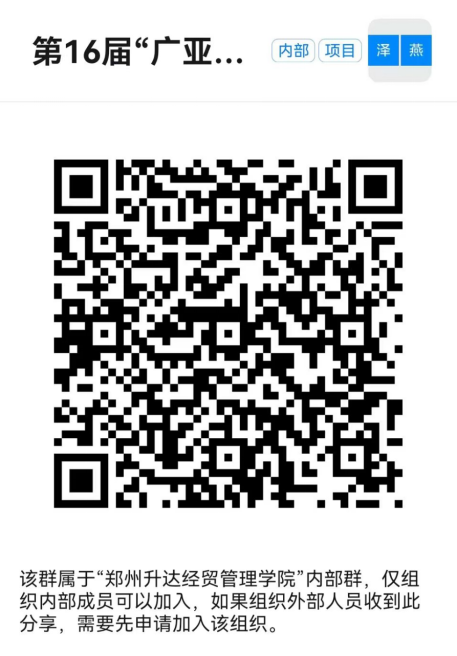 报名参赛员工钉钉扫描下面二维码,加入第十六届“广亚杯”计算机知识竞赛钉钉群,并群内填写报名表。(竞赛具体事宜,后续将在此群通知!)