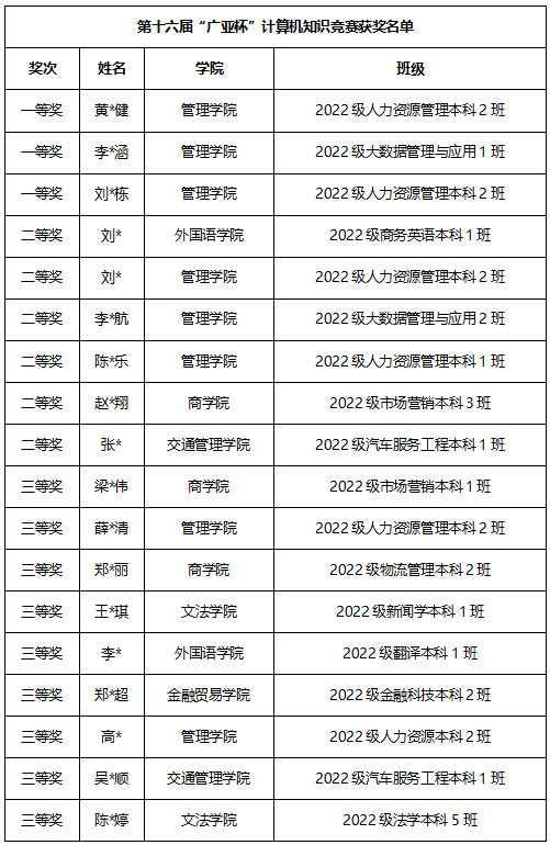 公司第十六届“广亚杯”计算机知识竞赛共250余名员工报名参加,评选出一等奖3名,二等奖6名,三等奖9名,现将获奖情况公布如下: