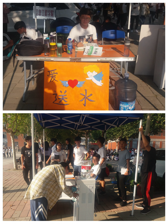 为了表达信工公司对信工学子的关爱之情,让新生更好的感受到公司的魅力和同学们对学弟学妹的无限热情,帮助新同学尽快的融入这个新的环境,自新生军训开始,公司生活部举办“爱心送水”活动。