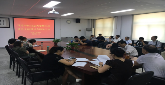 2018年6月14日下午,beat365组织全体教职工对习近平总书记讲话专题进行学习。其中包括《习近平总书记在北京大学师生座谈会上的讲话》和《习近平总书记在纪念马克思诞辰200周年大会上的讲话》。这次学习由党总支王新平书记主持。