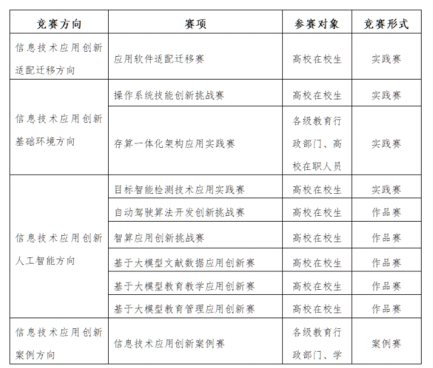 大赛赛项:大赛竞赛方向及赛项见下表。各赛项题目内容、参赛对象、评分细则等详见各赛项方案。