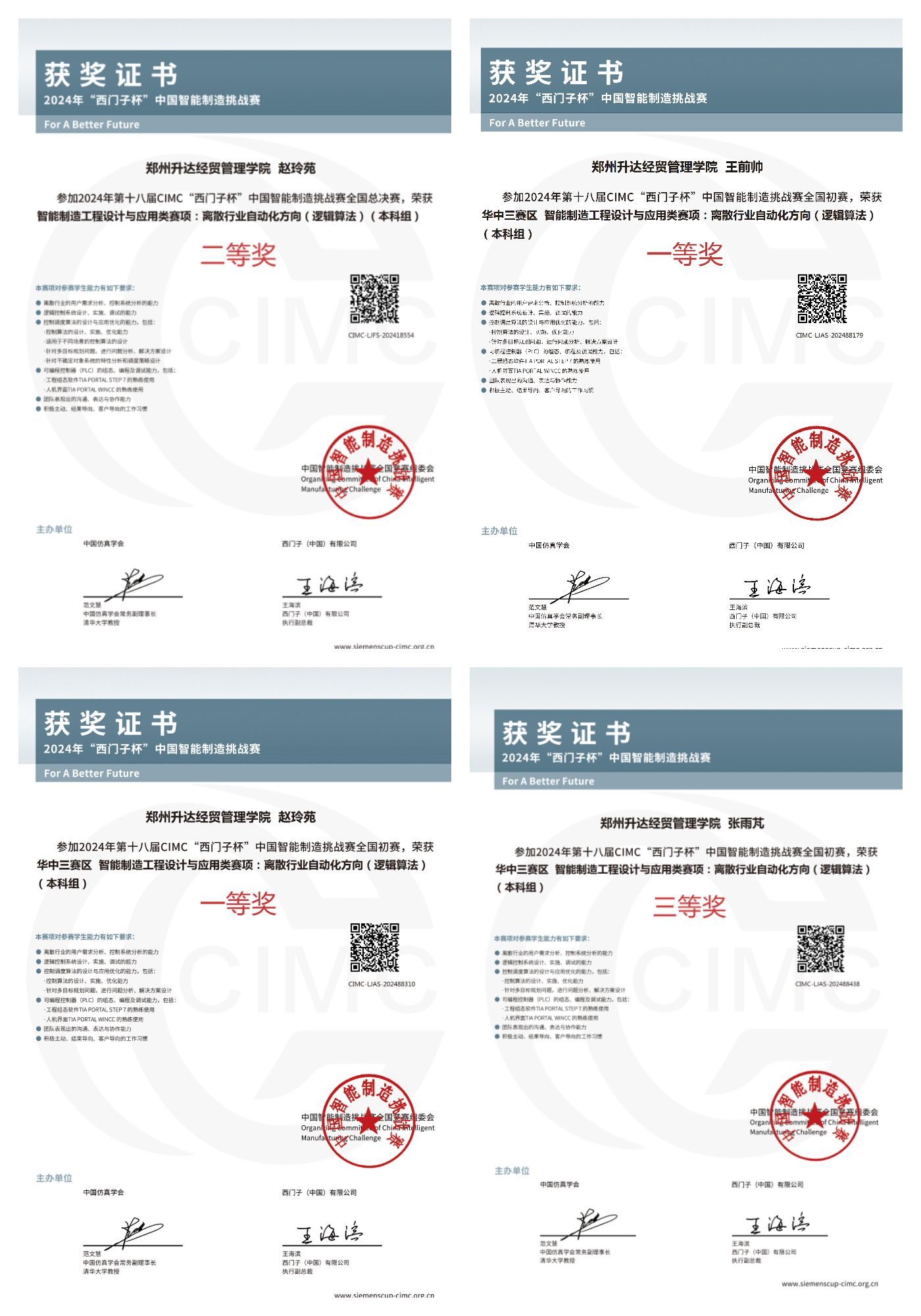 近日,第十八届CIMC“西门子杯”中国智能制造挑战赛全国总决赛在浙江湖州落下帷幕。公司学子在全国初赛(华中三赛区)中获得一等奖2项、三等奖1项的好成绩,并有1支队伍成功晋级全国总决赛,最终在在离散行业自动化(逻辑算法)赛项取得全国二等奖的好成绩。