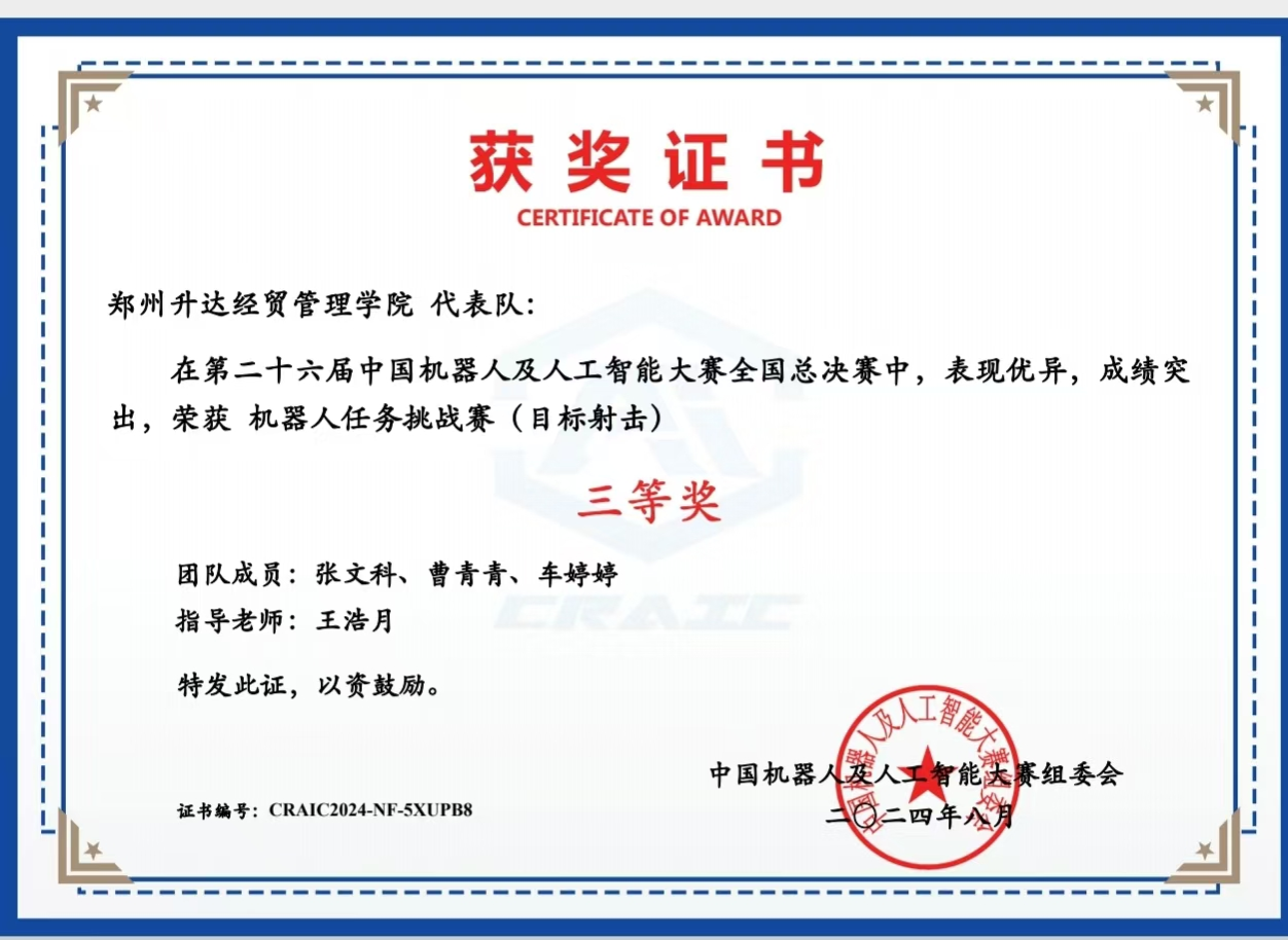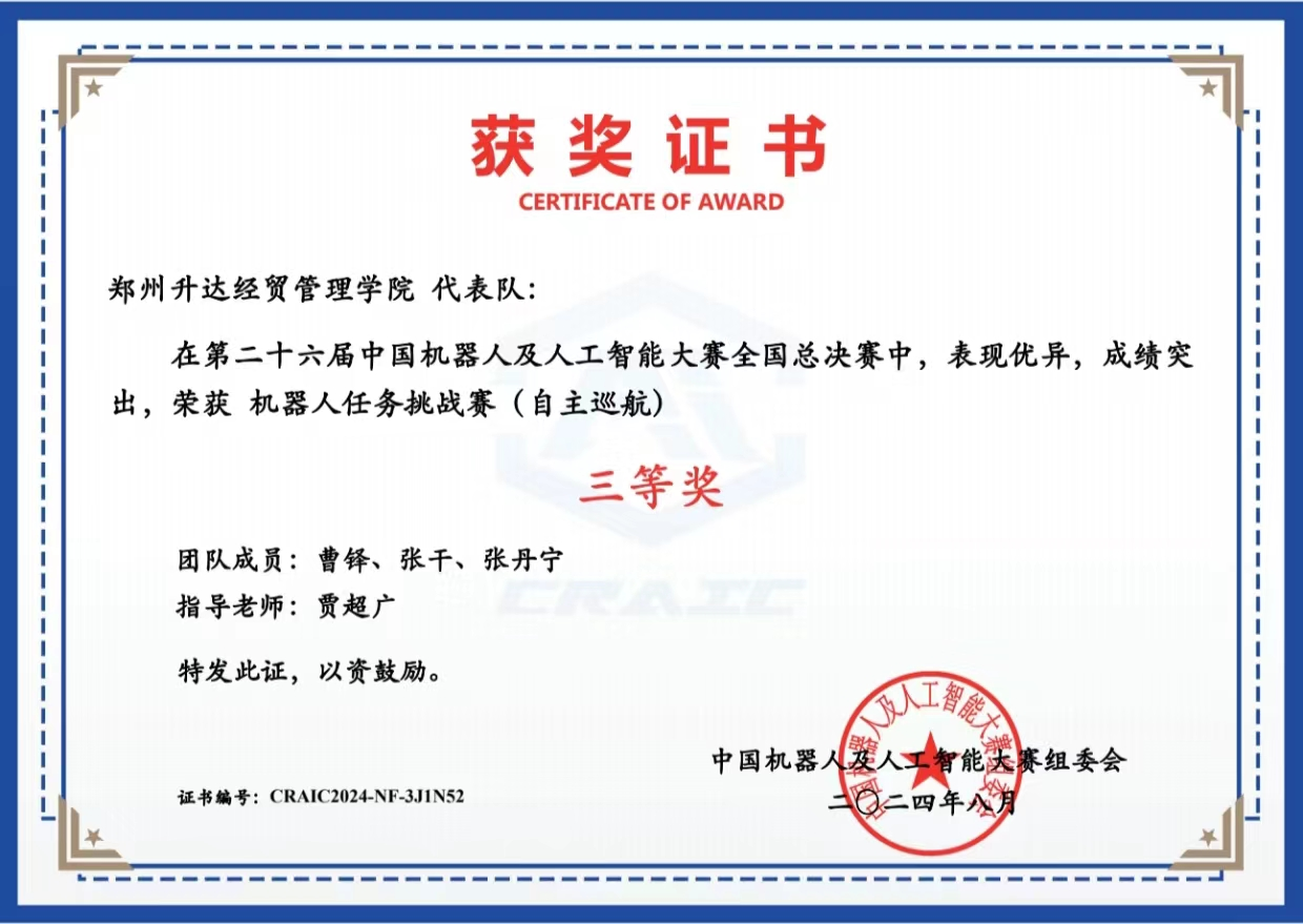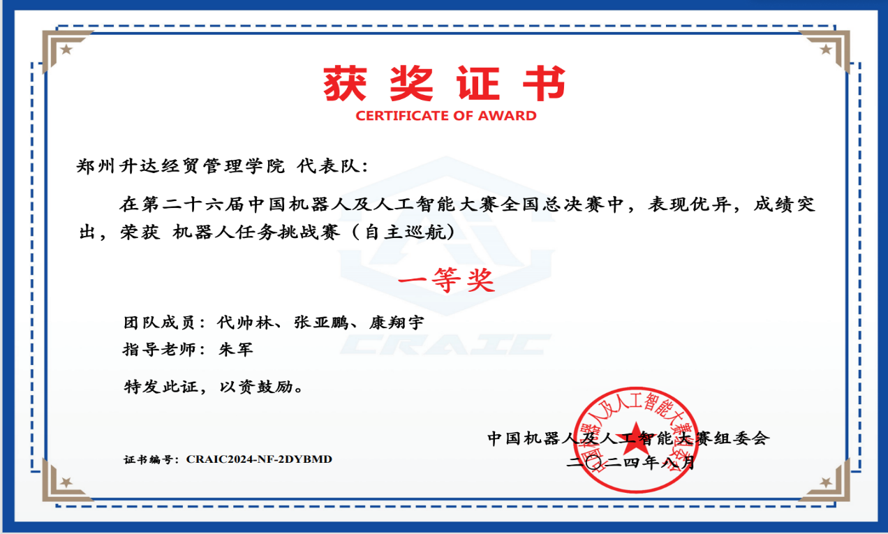 近日,公司beat365组织参加了2024第二十六届中国机器人及人工智能(CRAIC)大赛,4支队伍冲进全国总决赛,并于8月19日-8月22日在全国总决赛中获得国家一等奖1项、国家二等奖1项、国家三等奖2项。