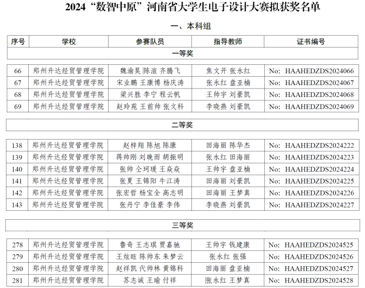 今年,公司共提交了19支队伍的作品参与评选。经过组委会的严格评审,公司14支队伍的作品获得了奖项,其中一等奖的数量和获奖总数均在河省内民办高校中位居首位。具体获奖情况如下:河南省一等奖4项,二等奖6项,三等奖4项,共计14项。以下是详细的获奖名单: