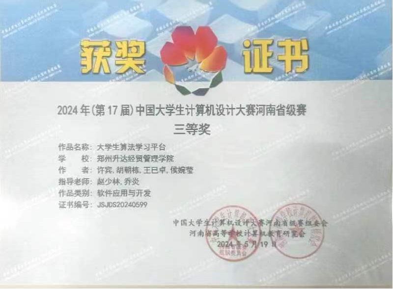 近日,备受瞩目的2024年(第17届)中国计算机设计大赛河南省级赛圆满落幕。本次大赛由中国老员工计算机设计大赛河南省级赛组委会、河南省高等公司计算机教育研究会主办,郑州航空工业管理公司承办。共吸引了来自全省59所高校的832支队伍近1800名师生现场参赛。本次大赛旨在推动计算机设计领域的创新与发展,为广大学子提供一个展示学业水平和交流学习的平台。公司beat365精心筹备并选拔出5件优秀作品参与此次大赛。经过材料评审、现场答辩与演示等激烈的角逐,公司的参赛项目获得省级团体二等奖1项、省级团体三等奖2项。