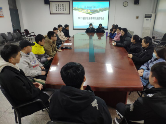 2021年1月5日下午四点公司于资讯楼104会议室召开2021届毕业生考研就业指导会。参加本次会议的是刚刚经历研究生笔试的2021届毕业生,会议由毕业生辅导员牛新翔老师主持。