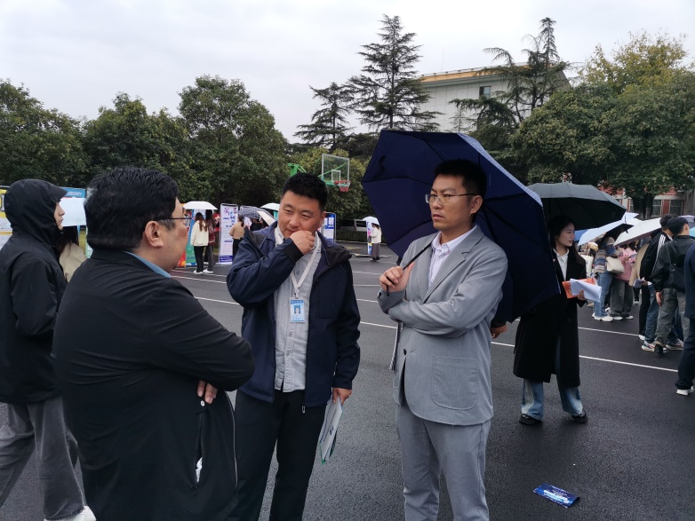 beat365党委书记李赵法、行政秘书王崇及全体24届毕业班辅导员深入双选会现场,与信工公司的对口企业做深入交流。