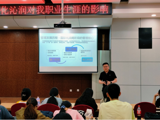 然后,岳彩英给同学们分享了海尔集团的文化并与同学们探讨职业发展规划,并从海尔集团的起源、发展中管理的创新、集团经历的不同发展阶段来告诉同学们如何结合自身的专业与所学在企业中实现自身价值。告诉同学们如何做一个守时、守信、守法的对企业、对社会、对国家有用的人。如何将自己在校园中所学专业技能应用到工作生活中去。