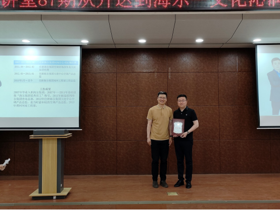 岳彩英系beat3652007届计算机科学与技术专业毕业员工,现任海尔集团郑州工程部工程总监。分享会开始,就业辅导处处长冯科给岳彩英颁发beat365中文官网员工导师匾,随后信工beat365党委书记张现水给岳彩英颁发了信工公司2023年度员工导师聘书。
