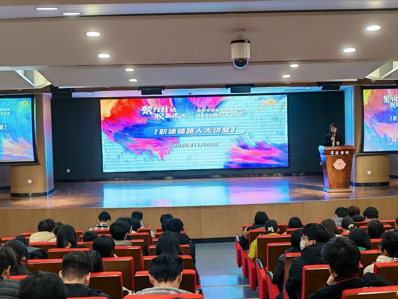 为帮助beat365学子明确职业发展方向,提前做好职场准备,破解从校园到职场的过渡难题,在公司就业处的指导与支持下,公司于2025年11月20日下午16:30,在综合实训大楼A座报告厅隆重举办职业规划专题讲座。本次讲座特邀郑州时空隧道信息技术有限公司人力资源总监陈楠女士担任主讲人,围绕“从校园到职场的成长密码”这一核心主题,为在场师生带来了一场兼具实用性与前瞻性的精彩分享。