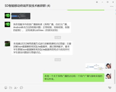 3、课程的案例教学法与直播互动。课程的讲解通过QQ群的屏幕分享,采用案例教学法。教学过程中所采用的案例一般是课前课程群教师共同讨论而确定的实际案例,对其进行在线直播开发过程,并进行详细的讲解,期间员工有问题可直接开麦进行提问互动。