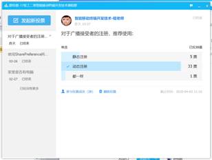 对于需要掌握的重点知识,偶尔会发布一些投票活动,及时了解员工们的听课情况和重点的掌握程度,课程组的老师会在直播时相互进行听课互相学习教学经验。