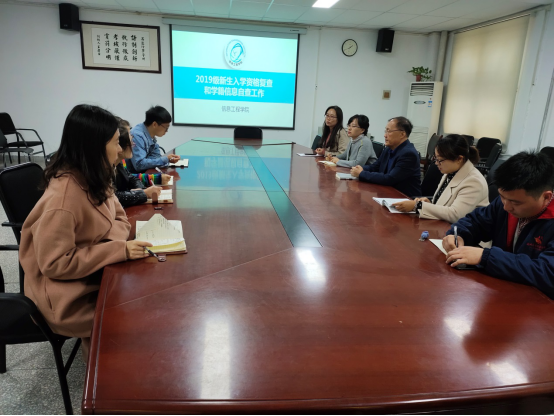 2019年11月4日下午,信工公司在资讯楼104会议室召开了2019级新生复查工作总结会,经理李学桥,副经理白鑫、党总支书记王新平、教学秘书赵会燕、行政秘书王崇及全体新生辅导员参加了会议,会议由公司教学秘书赵会燕主持。