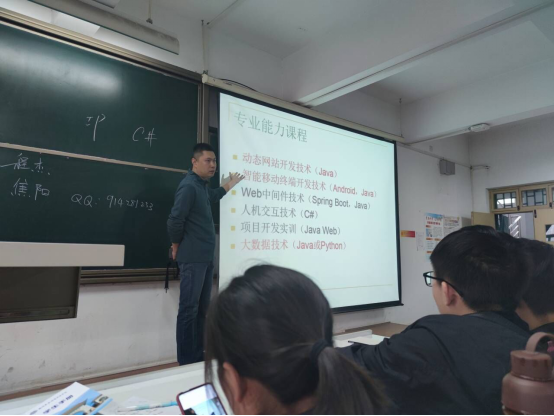 2020年10月6日下午2点到5点,在资讯楼415开展了2020级软件工程本科的专业介绍会。会上2020级软件工程本科一班的班主任程杰老师、软件工程本科二班的班主任焦阳老师、软件工程本科三班的班主任张娟老师分别做了自我介绍。程杰老师主要就专业的培养目标、要求、内容、发展方向以及核心课与特色课程做了介绍;焦阳老师就考研考证做了详细的介绍,激励员工们明确小目标,考取英语四六级和计算机资格水平考试的证书;张娟老师就学科竞赛做了精彩的介绍,鼓励同学们积极参与学科竞赛。