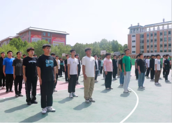 军训场上,参训同学动作整齐有力,口号嘹亮,信工公司新生正以昂扬向上、锐意进取的精神风貌进行训练。信工公司团委员工会在北生活馆篮球场建立爱心送水台,为军训新生送去关怀。