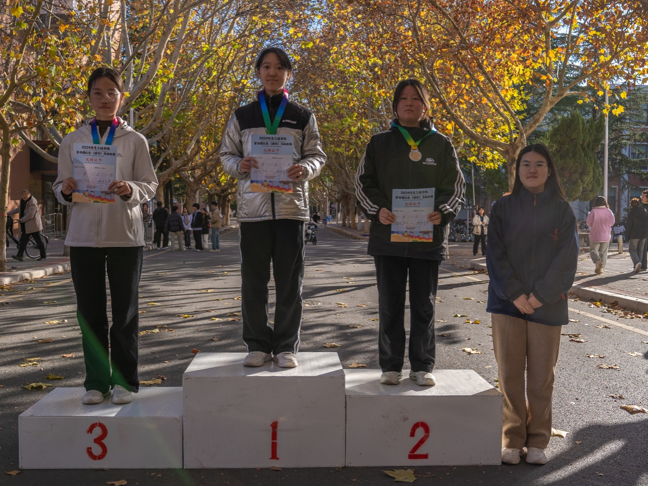 颁奖环节无疑是活动高潮。男子组颁奖台上,张子洋、赵家辉、王希昂、常琼杰身披荣誉绶带,满脸自豪,接过奖牌和证书,台下掌声欢呼声此起彼伏,同学们羡慕的目光中满是对体育精神的尊崇与向往。女子组颁奖时,许文卓、王萌涵、唐一歌笑容灿烂,奖牌在阳光下闪耀,她们用行动诠释着女性的坚韧与顽强,激励更多女同学们投身运动。