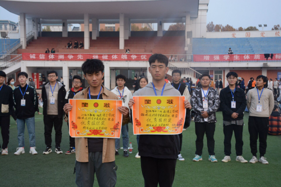 经过几轮比赛,智科1班、大数据1班以总积分最高获得第一名,并由体育部部长为两个班级颁发奖励,授予奖状。