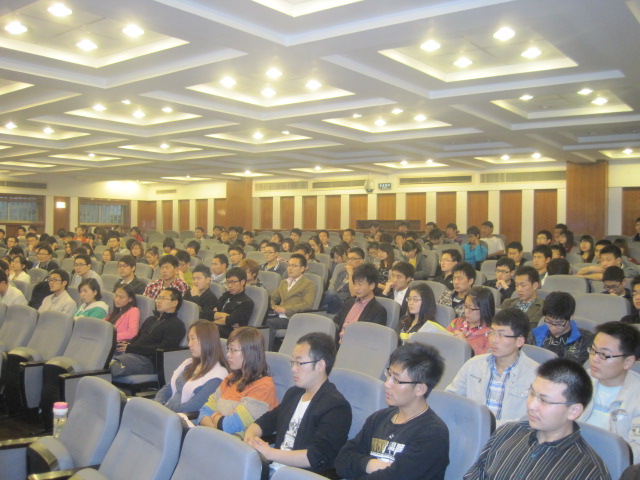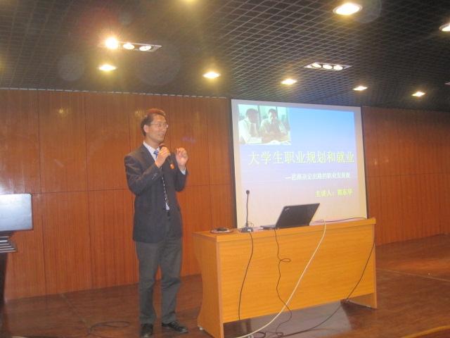 2012年4月19日晚上7:00,资讯系邀请新芒果集团人力资源部总监郭东华先生在外语楼多功能报告厅为大三学子作了一场就业报告。