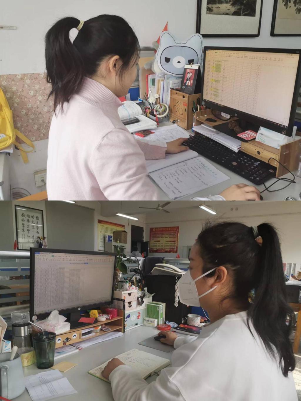 “同样的事情重复做,重复的事情用心做,每天保证所有员工的双码、核检、体温等数据全部上报完毕,我们才安心。”信工辅导员高珊珊说。在这个没有硝烟的战场上,作为疫情防控信息通讯员的辅导员们,每日从早晨工作到深夜,进行在校生摸排、健康日报告信息等数据上报,建立以年级、班级、宿舍为单位的“排查—报告—反馈”机制,逐一确认、逐条核实、准时上报,力求各项数据填报及时准确,精确筑牢疫情防控“数据防线”。同时,还要密切关注疫情最新动态,及时转发官方通知、权威消息,宣传正确的防控方法,鼓励同学们适当锻炼、科学防控,不信谣,不传谣,不制造恐慌。