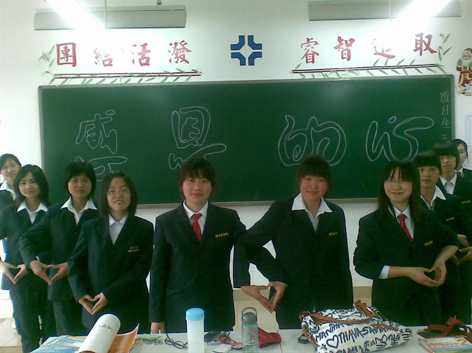 4、在08级各班开展“感谢党、感谢社会”的主题班会,由班级党员同志讲述对党的认识,使同学们更加热爱党、誓做党的接班人,同时,号召员工把感恩之情化为强烈的社会责任感,并付之于服务社会的实际行动,培养员工关心他人、服务社会、刻苦求学、立志报效祖国和人民的高尚品质。