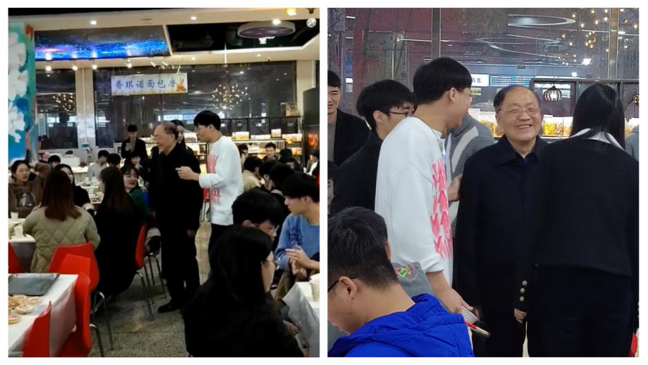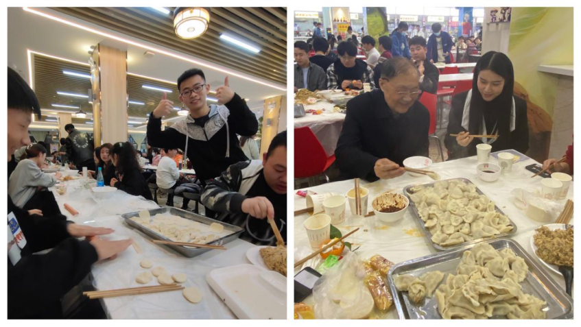 2021年12月21日冬至晚上,李学桥教授来到老兵餐厅、龙湖餐厅和同学们一起包饺子、吃饺子,共度冬至。餐厅提前备好了饺子皮和馅料,活动现场,大家各显身手,相互交流学习包饺子的经验和手艺,包出的饺子各式各样。包好的饺子也一个个“跳“进锅里,接着一盘盘热气腾腾的饺子被端上了餐桌。李教授吃着同学们包的饺子赞不绝口:“饺子包的各式各样,很有创意!真好呀!”李教授一个个地叫出同学们的名字,和他们畅聊人生,并对他们的未来规划提出了一些建议,边吃边聊,其乐融融,大家一起感受着冬日的快乐和集体的温暖。