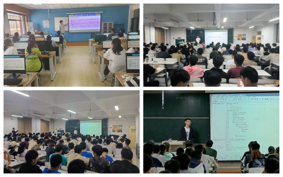 2023年11月2日,ACM协会成员梁聪、罗丙鑫、刘欢、吴棋、赵赫于资讯楼为计算机科学与技术专业的大一新生进行专业竞赛教育。