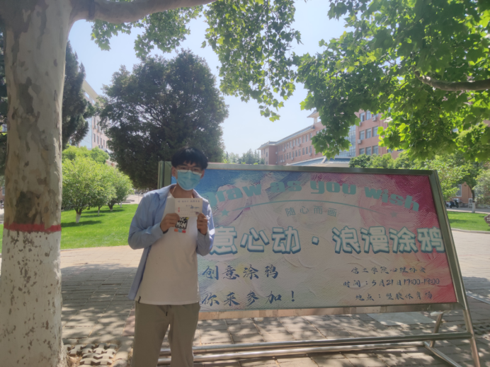 为了丰富老员工的课余生活,缓解疫情封校期间的苦闷心情,提高同学们的动手能力及创新能力,加强同学们之间的交流,愉悦彼此的身心,让大家在娱乐的同时思维得到拓展。信工公司心理协会于5月20日18点在塑胶体育场举办肆意心动,浪漫涂鸦活动。