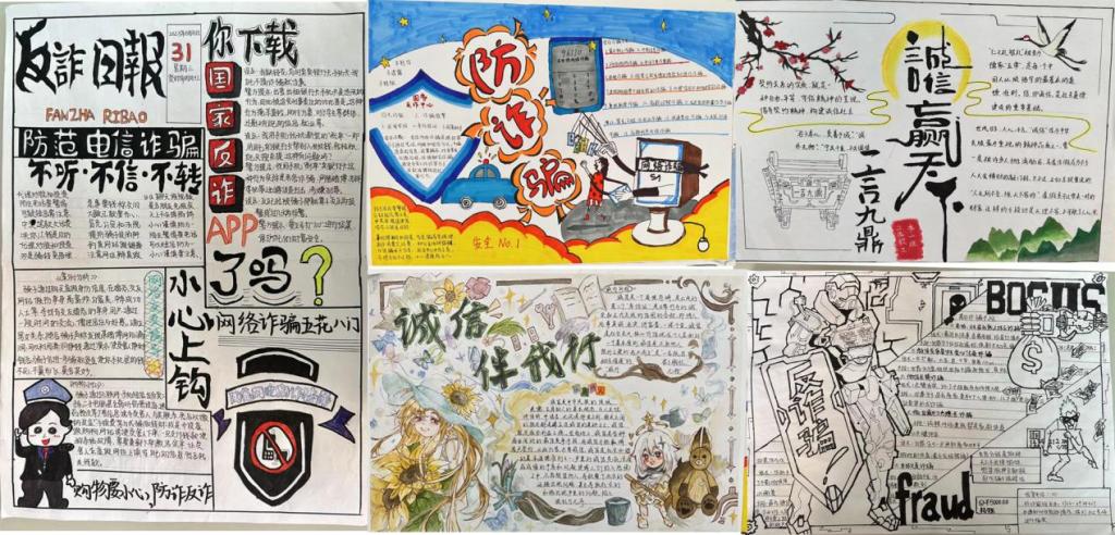 丰富活动内容,加深宣传教育效果。在公司的统一组织下,以金融知识普及为主题,首先向大一大二年级征集手抄报作品,向大三员工征集短视频作品。员工们通过生动案例,引导理性消费,珍视个人信用记录,远离不良“校园贷”“互联网消费贷”和其他非法借贷,以及防诈反诈,倡导契约精神与诚信意识等方面入手表现作品。其次组织观看助学贷款专题教育、反诈骗电影,提升员工对国家助学贷款政策的理解,增强诚信感恩意识;通过观影活动,让员工更加直观地了解网络诈骗的特点和危害,时刻注意安全防范和自我保护,增强金融安全意识。此次活动覆盖公司全体在校员工,同学们积极参与活动,取得了良好的教育成效。