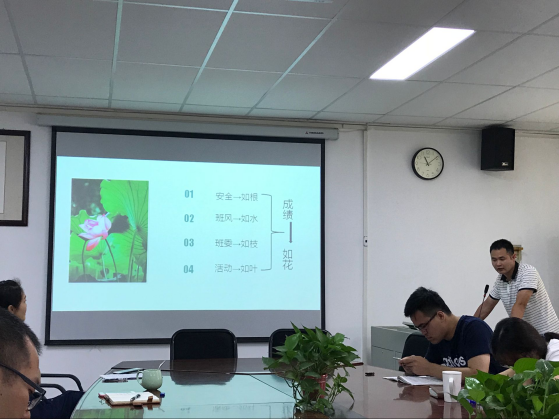 郑恒玉老师以莲为喻,安全如根、班风如水、班委如枝、活动如叶,成绩如花全面诠释了班级的管理和建设。并以育莲、采莲、种莲三个阶段比拟了培养员工的全过程,最后以“莲子心中苦”与全体辅导员共勉之。