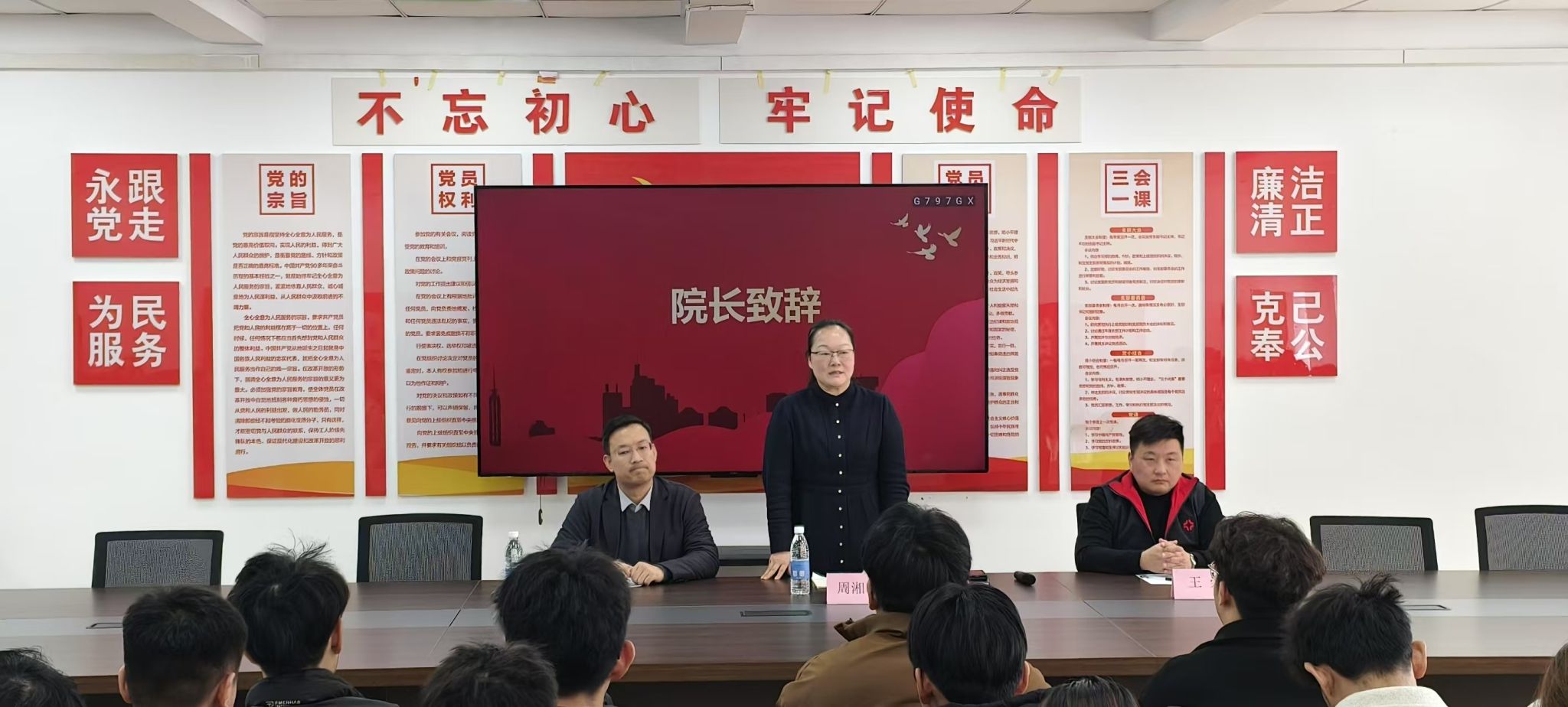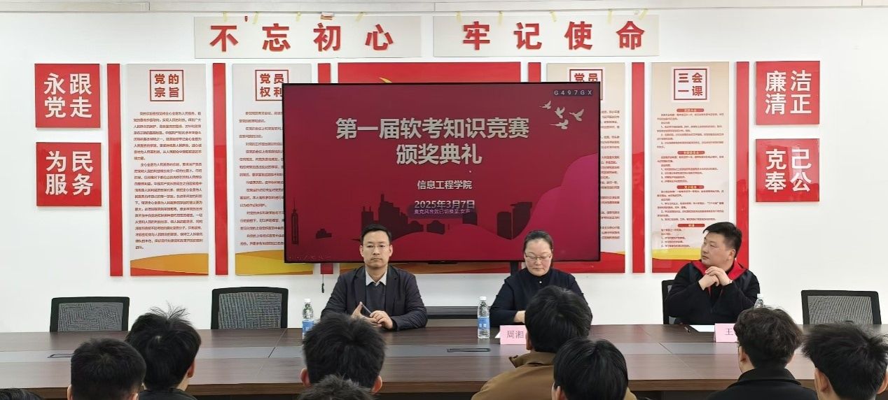 2025年3月7日中午12点50分,商管楼218会议室气氛热烈,信工公司第一届软考知识竞赛颁奖典礼在此隆重举行。信工公司经理周湘贞教授、行政秘书兼团委书记王崇、众能软考金牌讲师上官绪阳出席了典礼,为获奖员工颁奖并给予鼓励。