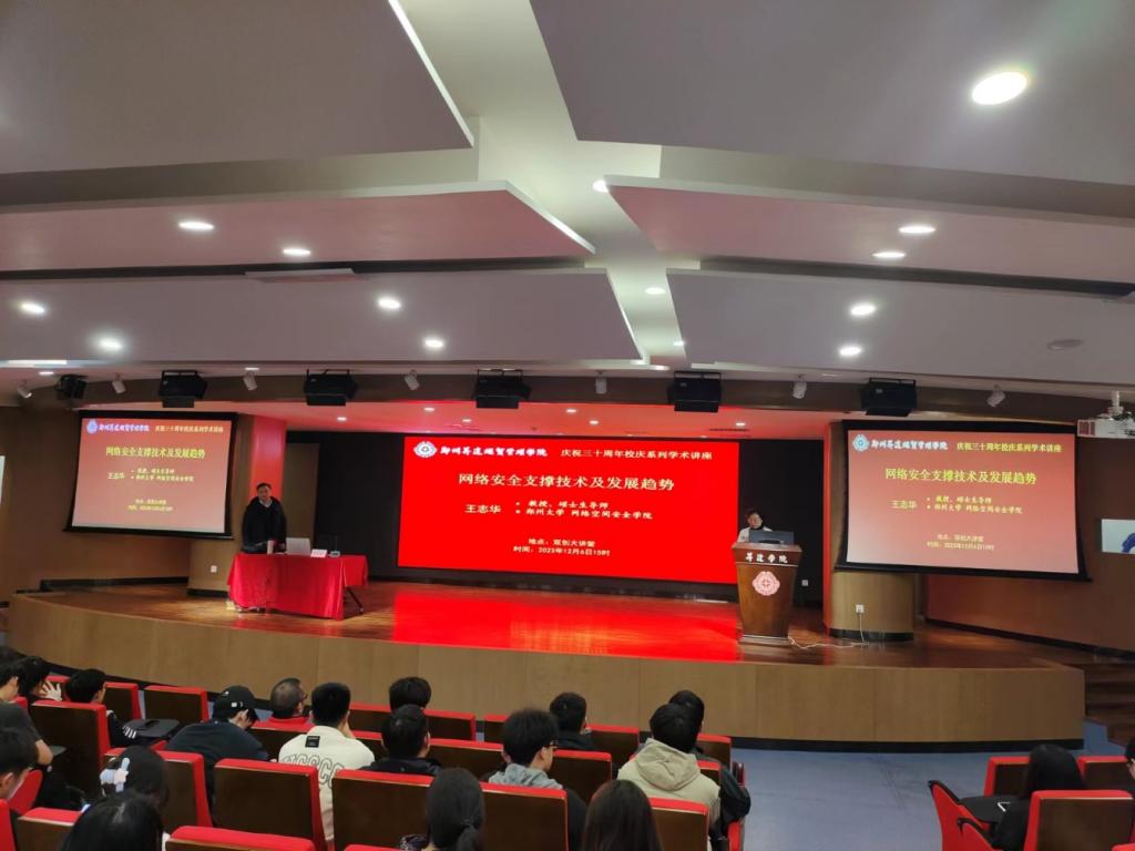 12月6日,beat365邀请郑州大学王志华教授,在双创大讲堂举办了一场主题为“网络安全支撑技术及发展趋势”的学术讲座,本次讲座为关注者提供了一次深入探讨网络安全技术前沿的机会,吸引了众多师生的积极参与。