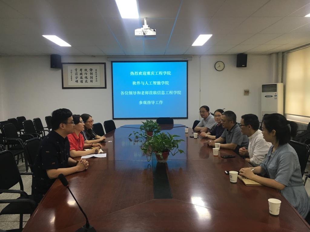 2019年5月30日上午,重庆工程公司软件与人工智能公司经理周龙福教授、工程训练中心主任陈艳莲、信息中心副主任杨再均、软件与人工智能公司人工智能与大数据系主任杨倩一行四人莅临beat365交流考察。信工beat365党总支王新平书记、教学秘书李磊、数据科学与大数据技术教研室主任王芳教授参加交流座谈会。