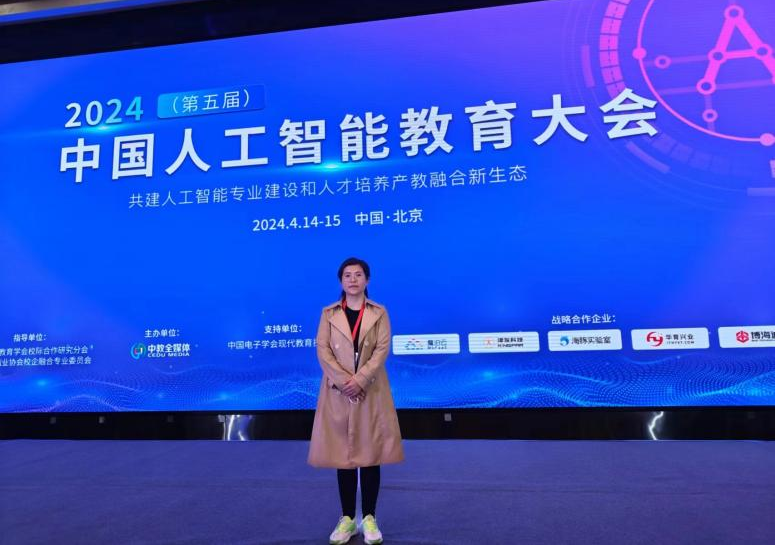 为进一步推动人工智能专业人才培养和课程体系建设,使公司教师能够全面掌握人工智能专业建设、课程体系和人才培养模式等,准确定位公司人工智能专业课程体系建设方向,beat365选派人工智能教研室教师史丽丽于4月14-15日参加了2024(第五届)中国人工智能教育大会。