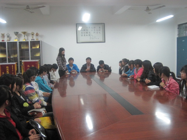 首先,由陈刚老师宣布资讯系新一届舞蹈队正式成立,并对各位队员的加入表示热烈的欢迎。随后,陈刚老师作了讲话,他谈到:第一,希望大家要对自己充满自信,对资讯系舞蹈队也要有信心,毕竟我系曾有许多优秀舞蹈诸如《七月火把节》、《狼图腾》等在全院的比赛和晚会上均获得过高度认可,大家要秉承老一届舞蹈队的优良传统和作风,为系里争光添彩;第二,希望大家要发扬刻苦训练的精神,发扬“成都小女孩路灯下练芭蕾”的那种为了实现梦想、不畏艰难困苦的精神,努力克服各种困难,排练出高水平的精品舞蹈;第三,系各级领导将会全力支持舞蹈队的发展,将尽最大努力帮助解决各种困难。对陈老师的讲话,同学们致以热烈的掌声。