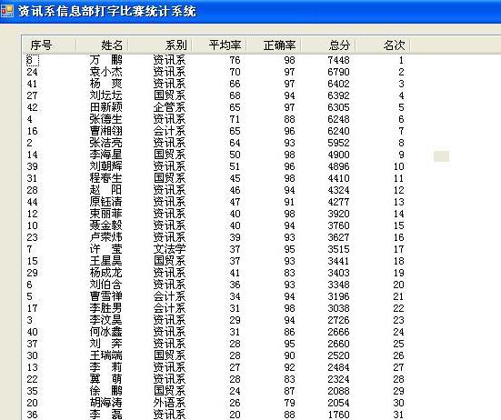 首先由资讯系团委书记助理赵阳简单介绍了比赛规则,每位参赛选手都斗志昂扬地等待着比赛的开始。随着比赛的正式开始,选手们聚精会神地盯着屏幕,双手在键盘上飞舞。此时那敲击键盘的声音犹如旋律美妙的音符,表达出选手们的心声,在短短十分钟的时间里,证明着每位参赛选手的指法和速度。时间一秒一分地在指尖流走,最后工作人员高效地统计出选手们的成绩,资讯系万鹏同学、袁小杰同学、杨爽同学分获前三名。
