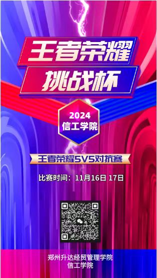 为丰富同学们的课余生活,营造积极向上的校园氛围,信工公司电竞社将举办一场王者荣耀挑战杯电竞比赛,为热爱电竞的同学搭建展示风采的平台。