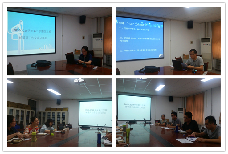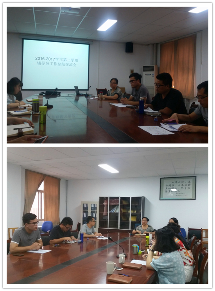 2017年7月27日,我系在资讯楼104系会议室召开2016—2017学年度第二学期辅导员工作经验总结分享会。系党总支王新平书记、行政秘书兼团委书记张娟老师和全体辅导员出席了本次交流会。