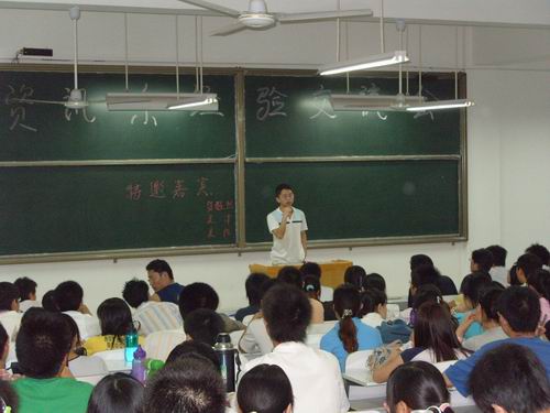 5月29日晚,微风轻拂,幽雅宁静、如诗似画的升达校园内处处洋溢着青春的风采。灯火通明的资讯楼不时传来阵阵的掌声,由资讯系团委主办、04级团总支承办的考研考证学习经验交流会正在热烈进行。