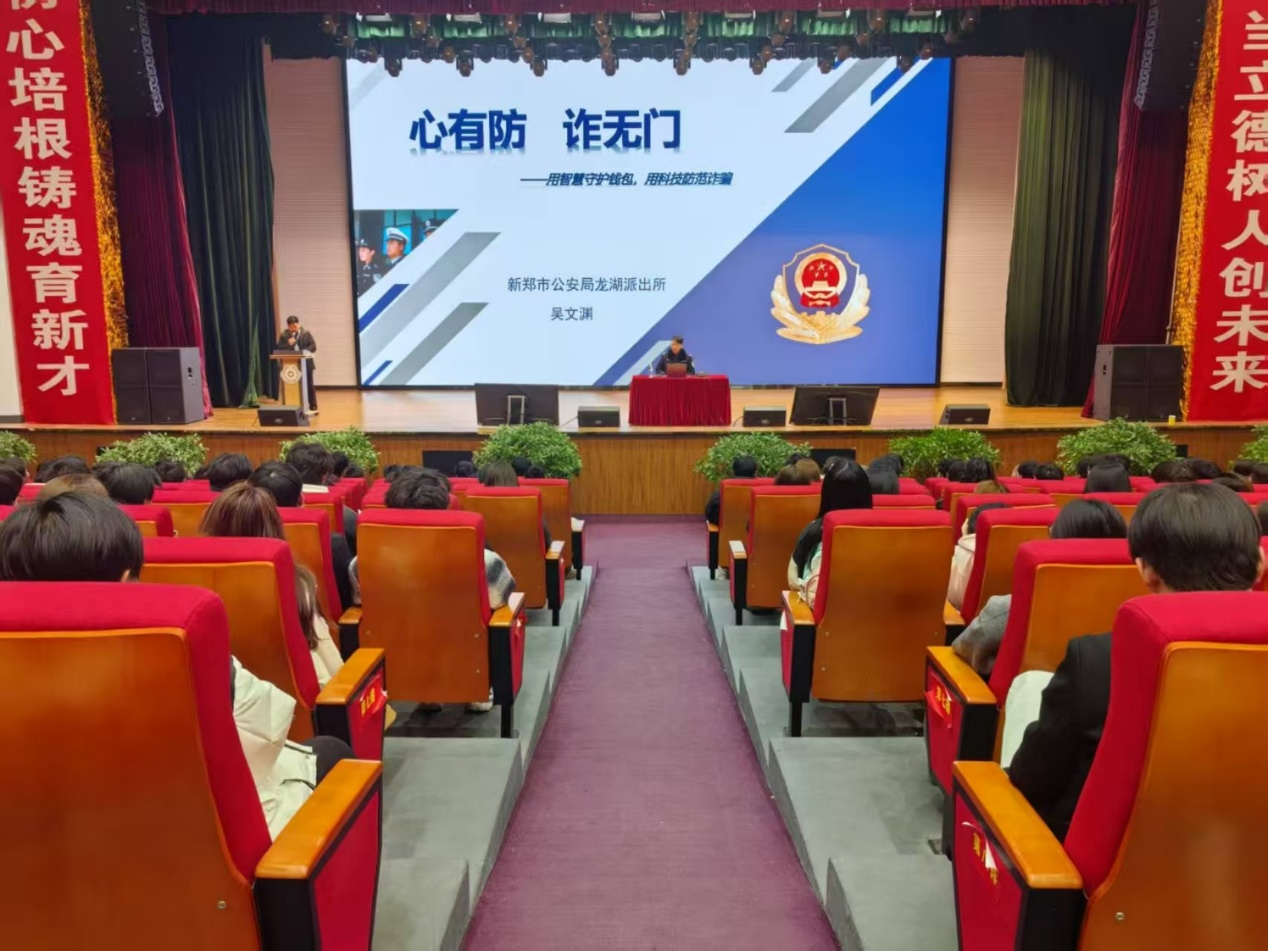 2025年2月27日下午6点,一场别开生面的反诈宣传活动在思源会馆举行。此次活动由新郑市公安局龙湖派出所民警吴文渊担任主讲人,旨在提高师生的反诈意识,有效防范电信诈骗,信工公司行政秘书兼团委书记王崇、辅导员以及2000余名员工参加了本次讲座。