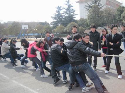 从3月2日至3月7日,我系10级和09级各班同学在资讯系团委员工会组织部的组织下,利用课外活动时间在公司明德讲坛前的操场上进行了本次拔河比赛。