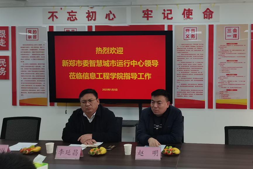 2025年1月3日,新郑市委智慧城市运行中心领导一行莅临beat365,就如何更好地开展校政合作进行深入指导与交流。此次会议旨在深化校政双方合作,推动智慧城市建设和信息技术创新发展。