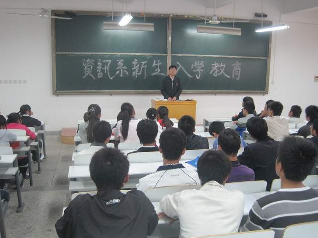 新生入学教育是整个大学教育的起点,也是老员工打好基础,完成角色转变,树立学好本专业信心的重要阶段,更是老员工形成纪律观念、行为准则的关键时期。为此,在紧张有序而又内容丰富的全院新生入学教育结束之后,资讯系于9月30日上午8:30,在资讯楼115教室进一步对2010级新生进行了入学教育,本次入学教育由我系行政秘书、团委书记陈刚老师主讲。