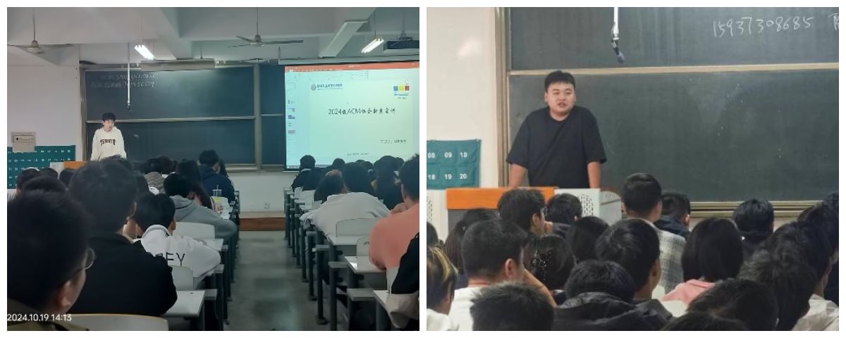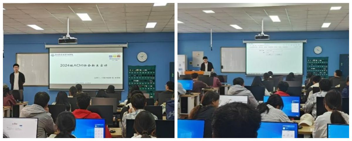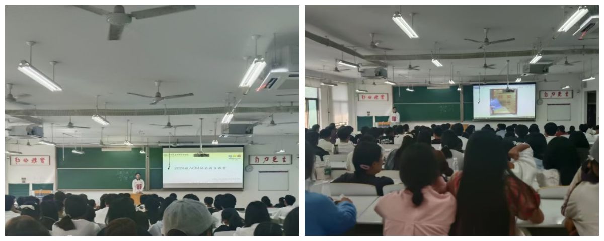 2024年9月24日,ACM协会成员谢斌于时金楼分别为软件工程专业的大一新生进行专业竞赛教育。