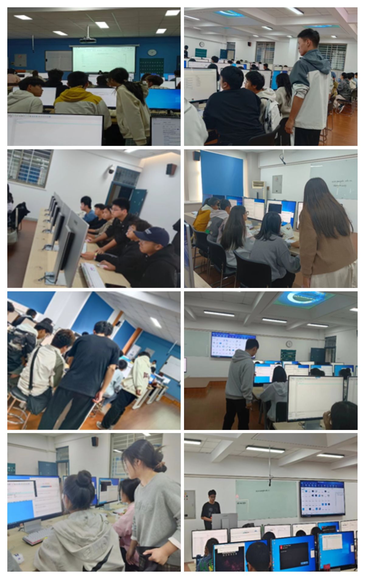宣讲期间并带领大一新生上机实操,感受编程的乐趣。ACM协会成员在一旁细心指导,指点新生在编程时出现的错误和语法规则的困惑之处,以及在面对问题时如何独自去分析和解决。