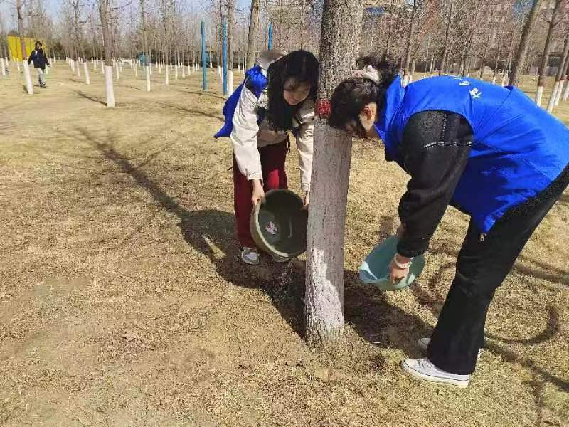 行动中,同学们认真清理了周边的垃圾,特别关注了对树木的保护。他们不仅清理了树下的杂物,还为树木浇水、修剪枝条,确保树木能够健康生长。此外,同学们还向路边来往的师生宣传环保知识,呼吁大家共同参与到环保行动中来。