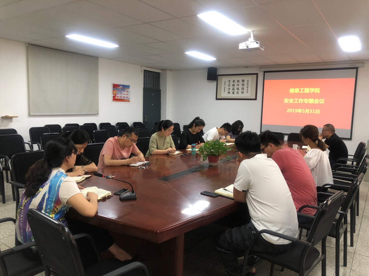 5月31日上午9点,信工公司在资讯楼108召开安全工作专题会议,王新平书记和全体辅导员老师参加此次会议。
