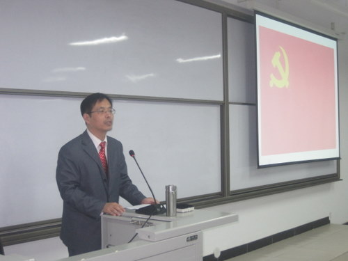 典礼结束后,由张娟老师介绍了本期业余党校的授课安排与学习要求,并由团委书记陈刚老师为入党积极分子讲授第一课——《端正入党动机 争做合格党员》。