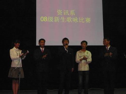 10月15日晚,龙湖报告厅内灯火辉煌,资讯系08级新生歌咏比赛在这里隆重举行。 08级团总支书记苗淑娟老师、辅导员陈刚老师、系团学干部和08级全体同学出席了本次比赛。