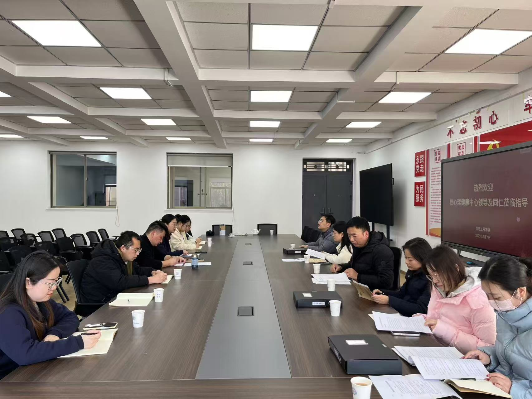 2025年1月7日,学期渐近尾声之际,校心理健康中心一行莅临信工公司开展走访调研活动,旨在深入了解公司心理健康教育工作开展情况,加强对二级公司心理健康工作的指导与支持。