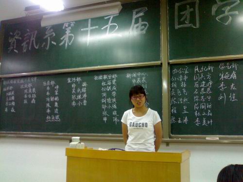 最后,钟老师总结发言,她对所有参加竞选的同学以及参与此次投票的老师和同学们表示感谢,并对所有的团学干部提出希望和要求,要求大家做任何事都要有热情、有责任心、有激情、有创造力,希望大家一如既往的支持资讯系的各项工作。(资讯系 曹丹丹 潘佳楠)
